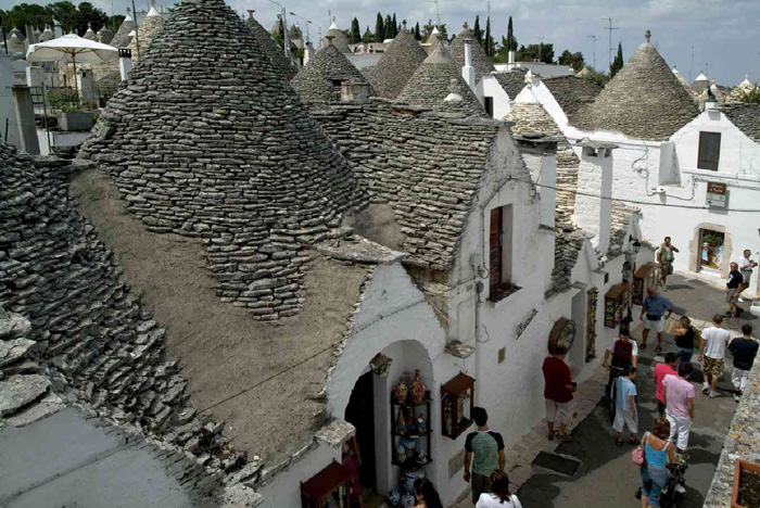 Eppure mai tanta casualità fece nascere il patrimonio dell’umanità dei trulli, un bene definito unico e irripetibile dall’Unesco e come tale protetto. Pare che si debba tutto a un tipaccio come Giangirolamo Acquaviva d’Aragona, conte di Conversano detto il Guercio. Il quale, volendo andare a caccia e affrancarsi dalla corte di Napoli, impose ai suoi sudditi di costruire abitazioni che all’occorrenza potessero subito essere “sgarrate” in caso di controllo per non pagare tasse. Quindi pietre a secco con assoluto divieto di malta. Anni fra 1400 e 1500.