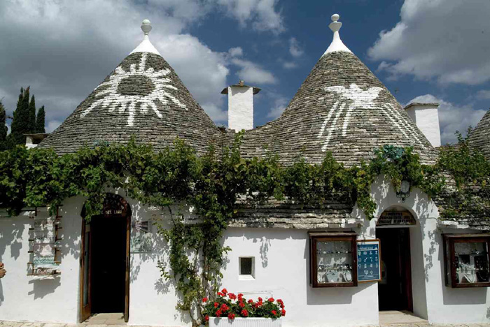 Il trullo era una dimora autosufficiente per la vita e il lavoro degli uomini e degli animali. Con uno schema quasi irridente nella ripartizione interna degli spazi che poco ha da invidiare alle più ricercate soluzioni dei moderni arredatori. E quei misteriosi simboli sui coni sono una lode al Signore o una invocazione di protezione rivolta al Sole. I trulli di Alberobello e della Valle d’Itria come recesso di silenzio e di bellezza, una “Venezia della pietra” a gloria eterna della Puglia.