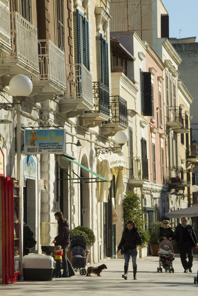 Il racconto della città però continua. Ci sono qui palazzi padronali e dimore storiche senza pari, splendore di un passato che non passa. Qui il borgo ottocentesco è un invidiabile scrigno, tra vicoli, lampioni, lucerne, archi, cortili, chiese, portoni, finestre, logge, edicole votive. Qui è nato il più antico teatro stabile di Puglia. E qui, con Valdemaro Vecchi, è sorta anche la prima tipografia d’arte di Puglia. Qui un festival della canzone negli anni ’50-60 si affiancava a Sanremo e Napoli. Qui i più grandi artisti sono passati dal celebre locale “La Capannina”. Qui sfilate di moda hanno visto anche gli Schubert e i Dior, con le più note firme che campeggiano ancora nelle raffinate vetrine. E il Moscato locale è un vino da palati fini.