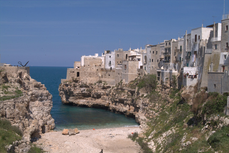 Ma Polignano è anche storia e un centro storico, chiese e archeologia, masserie e alberghi, gastronomia e tradizioni, curiosità e proverbi. Un pezzo unico da cogliere con le sensazioni più che con la cartina, da filtrare col sogno più che con la ragione, da percorrere con la fantasia più che con i passi. Un po’ sulle nuvole è con la sua altezza, e sullo strapiombo occhieggiano le finestre. E le sue cale taglienti come lame sono fiordi per gabbiani e pescatori. E bisogna venire a Polignano per imparare a stare, davanti a questo mare, in silenzio.