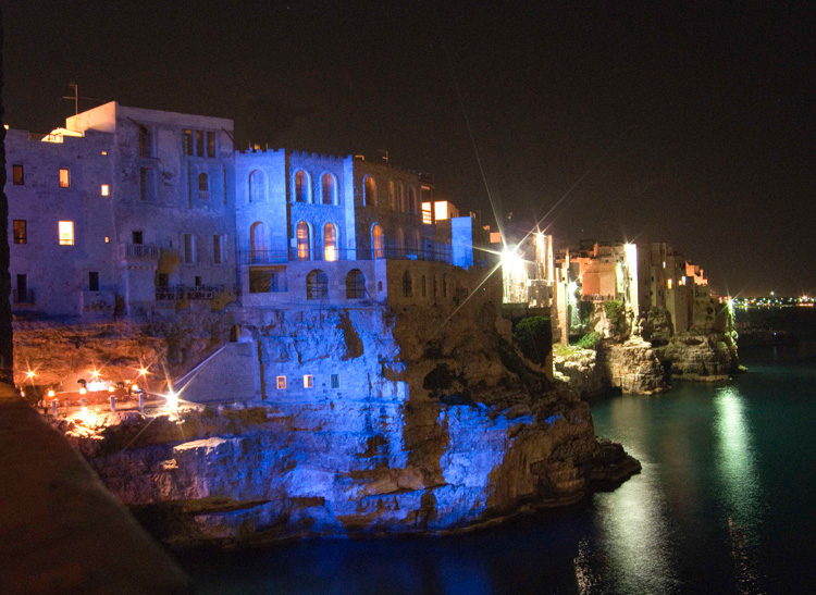 Più che sulla sua alta scogliera dal vertiginoso equilibrio, Polignano sembra sospesa sulla trasparenza della sua aria come tutti i posti dell’anima. Bisogna girare per le sue stradine. Bisogna appollaiarsi sulle terrazze mentre sotto le acque tonfano e “biancheggiano sulla scogliera”. Qui aleggia un senso di infinito da rimanerne sfiniti. Per questo Polignano è una sorta di lebbrosario dello spirito. E non per niente qui ogni anno volano gli aquiloni in una nota sagra, come un volo sospeso nella nebbia della salsedine.