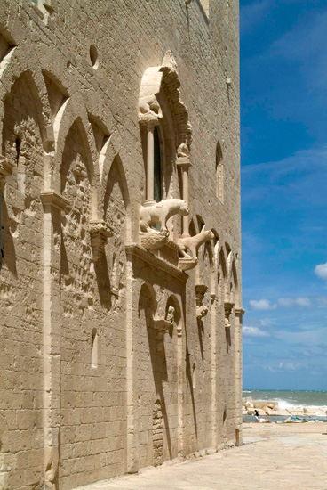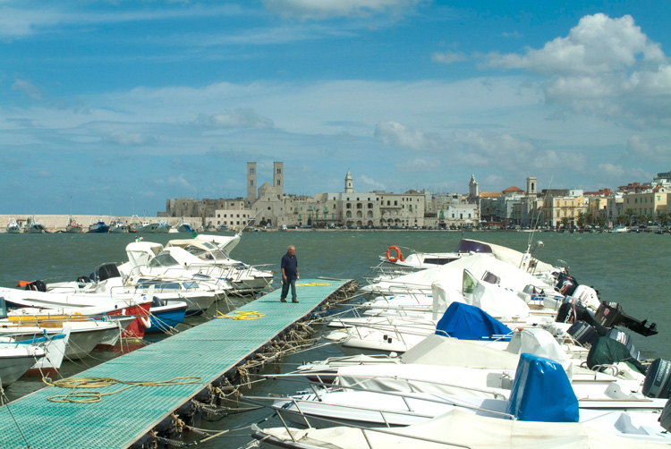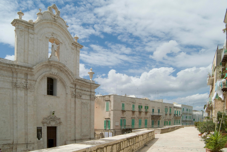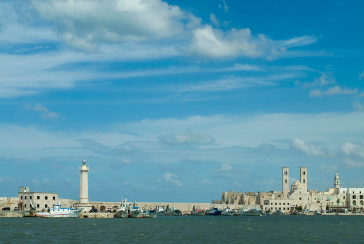 L’8 settembre di ogni anno, un corteo di barche attraversa il porto trasportando in processione la statua di Maria; e tutta la festa si basa sull’antica leggenda di un pellegrino che, ammalatosi di ritorno da un lungo viaggio in Terrasanta, fu ricoverato e salvato insieme a tutti i malati della città, grazie a un quadro della Madonna che aveva portato con sé da Gerusalemme. Così nasce la Chiesa dei Martiri, affacciata sul mare, con l’antico ospedale annesso. Molfetta è il porto, il ricovero delle antiche e moderne avventure: nel Duomo sarebbe stato sepolto – agli inizi del 1300 – il figlio del duca di Baviera, Corrado, fattosi monaco ed eremita, reduce da esperienze spirituali in Terrasanta e morto a Modugno nel 1155. Tutta la zona è stata da sempre il centro di partenze e arrivi, traffici, domini e distruzioni.