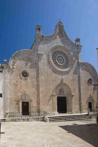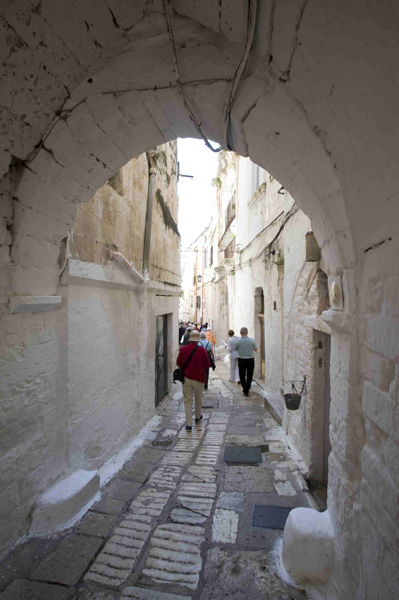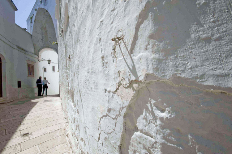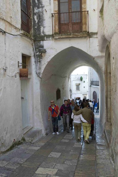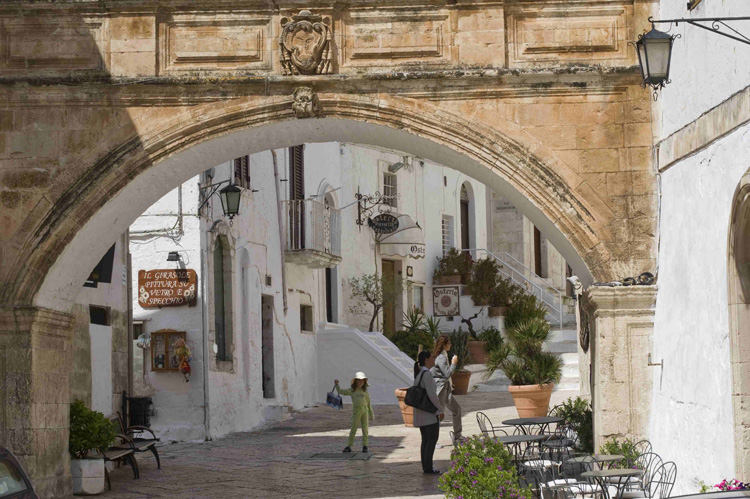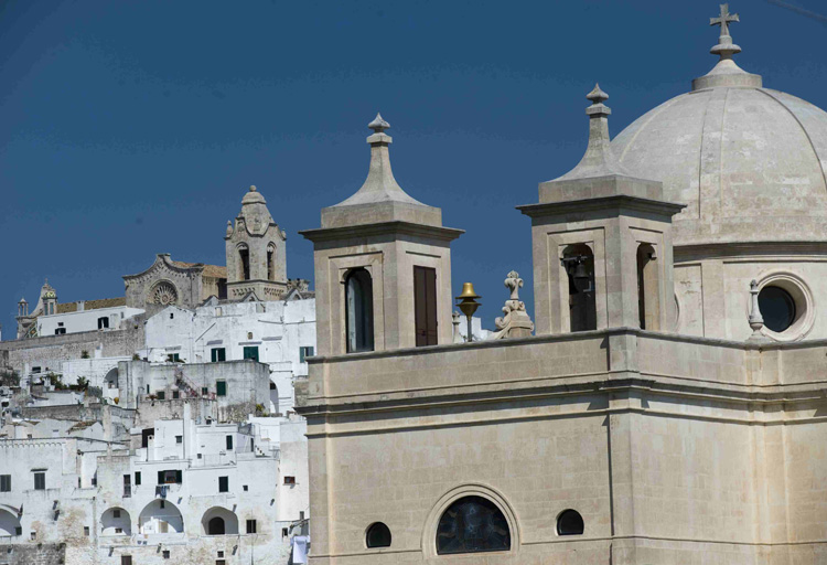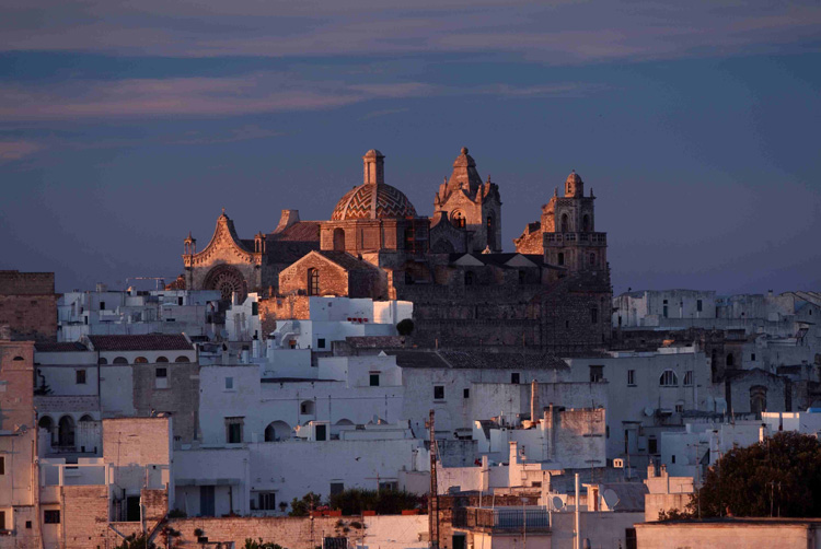 A costo di rischiare la scomunica nella terra dei campanili, Ostuni è il centro storico più bello di Puglia. Bello da stordire. Se una notte un viaggiatore ci arrivasse con la macchina fotografica, non saprebbe da dove cominciare tanti sono gli angoli, e le prospettive, e gli scorci. Tra vicoli e scalette, corti e piazzette, strettoie e serpentine, archi e balconcini, terrazze e camini, Ostuni è tutto uno sfinimento nell’abbaglio del bianco calce delle pareti. E “città bianca” è perciò detta, pennellate di candore di antica civiltà contadina e brivido di nido nell’aria rarefatta.