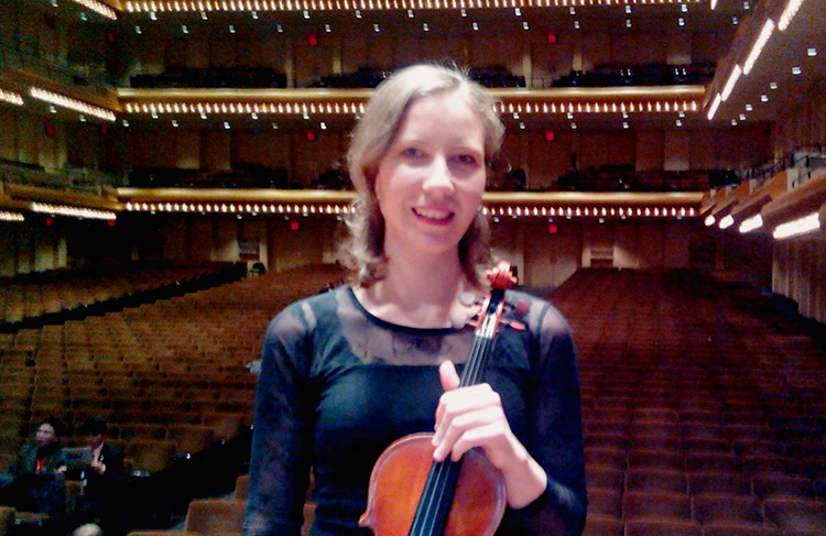 Lavorare come violinista in NYC è un’esperienza professionale stimolante e competitiva in modo costruttivo. Questa città in poco tempo mi ha permesso di incontrare e suonare con musicisti di fama internazionale come Mark Peskanov, Alexander Markov, Daniel Phillips, Giora Schmidt e molti altri, ed esibirmi in prestigiose sale da concerto fra cui la David Geffen Hall al Lincoln Center, ove è di casa la New York Philharmonic, e la rinomata Carnegie Hall. Spesso avevo sentito parlare di NYC come della “città che non dorme mai” e, da quando ci vivo, posso solo confermarlo. Desideravo un ambiente attivo per artisti internazionali altamente creativi, motivati e desiderosi di esibirsi il più possibile, ed eccomi dove questo è davvero possibile! Certo è necessaria una grande dose di energia, ma quando si vede la possibilità di realizzare le proprie idee e di migliorarsi continuamente, come ogni artista devoto alla sua disciplina dovrebbe per piacevole obbligo verso se stesso prima che verso il suo pubblico, allora la forza interiore è lì in automatico. Il lavoro diventa un’entusiasmante esperienza di crescita personale e ricerca. Qui mi ritrovo ad aggiungere alla quotidiana pratica strumentale, necessaria all’attività esecutiva di performer, una continua ricerca di contatto con altri musicisti locali. Questo è possibile attraverso la frequentazione di concerti, eventi culturali, mostre, gatherings di ogni tipo e le cosiddette “jam sessions” che sono già tanto popolari in ambito jazz, e si usano qui a NYC molto anche in ambito classico con il nome di “chamber music readings”: musicisti si danno appuntamento per leggere brani della letteratura cameristica, ed è così che nascono collaborazioni e progetti. Oltre all’attività di performer svolgo regolarmente anche quella di insegnamento. Ho uno studio presso due scuole private, una in Long Island City e una nell’Upper East Side in Manhattan. L’interessante per me nell’insegnare violino qui in America è la possibilità di entrare in contatto diretto con altri metodi differenti da quello con cui io sono cresciuta. In particolare mi riferisco al Metodo Suzuki che è diffusissimo qui, specialmente per l’introduzione al violino di alunni giovanissimi. Quotidianamente ho la possibilità di lavorare con ragazzi di ogni età e bambini che a volte non hanno ancora compiuto i quattro anni, ed è davvero interessante poterli osservare e sperimentare metodi di apprendimento per loro. I miei progetti futuri includono, oltre al prosieguo dell’attività concertistica, l’apertura di un mio studio privato come insegnante e l’incisione di un CD che esplori sonorità jazz in collaborazione con alcuni amici jazzisti, integrando così la passione che nutro per questo genere musicale di cui NYC è patria.”