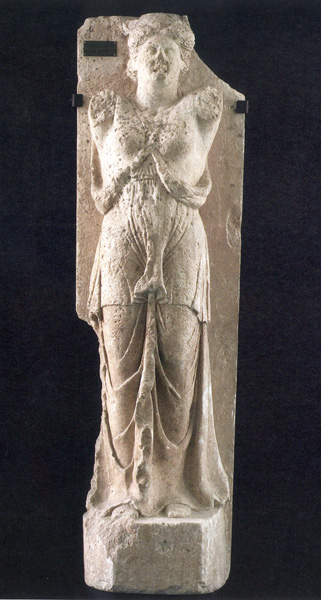 Raramente appare la figura, come in una trozzella rinvenuta a Rudiae con Eracle nel giardino delle Esperidi.