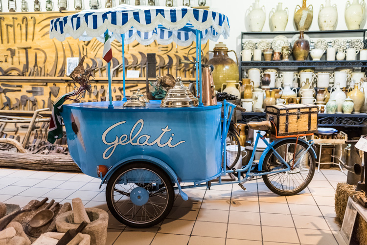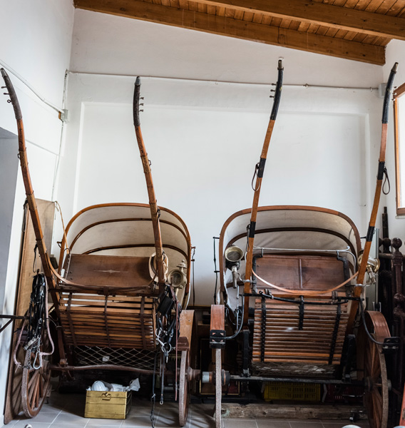 Fanno parte della raccolta alcuni calessi, traini e due carri per il traporto funebre: uno per i bambini e l’altro per gli adulti; apparecchiature per l’illuminazione ad energia eolica, ghiacciaie e macchine per la produzione di gelati, un carretto ambulante di un gelataio, attrezzature per la fotografia e perfino una cassetta di sopravvivenza e scrittoio della Grande Guerra.